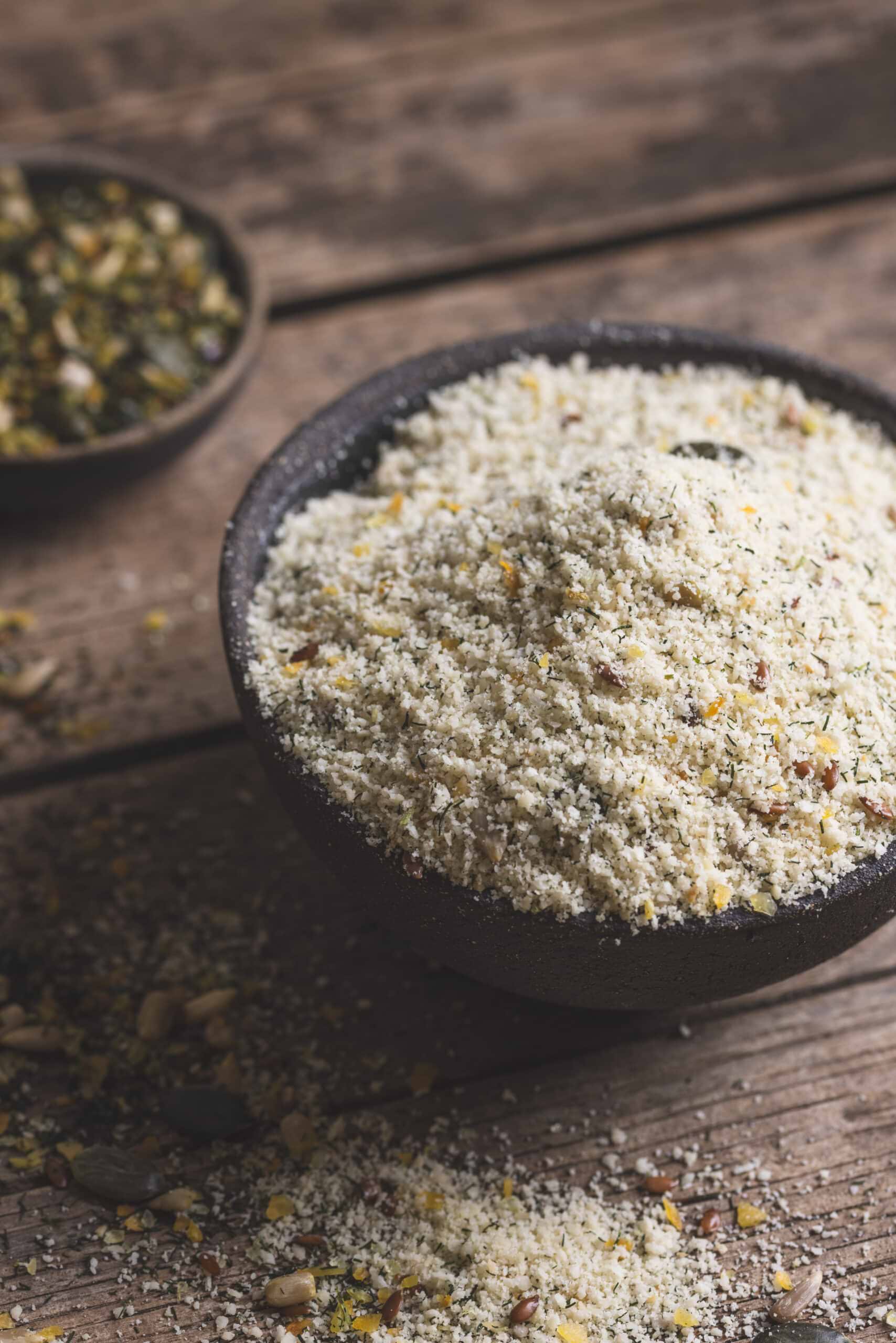 שקד טחון, שום, שמיר, פשתן, זרעי חמניה, זרעי דלעת, מלח ים, שמן זית